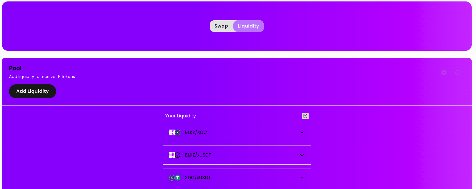 Go to the home page and click 'Swap' on the top left hand side then highlight Liquidity near the top middle of the page. On the left hand side, choose your coin from the drop down list in which tokens you would like to add for the liquidity pair. Input Section A amount of liquidity, and do the same for Section B and this will give you a conversion rate against the pair.